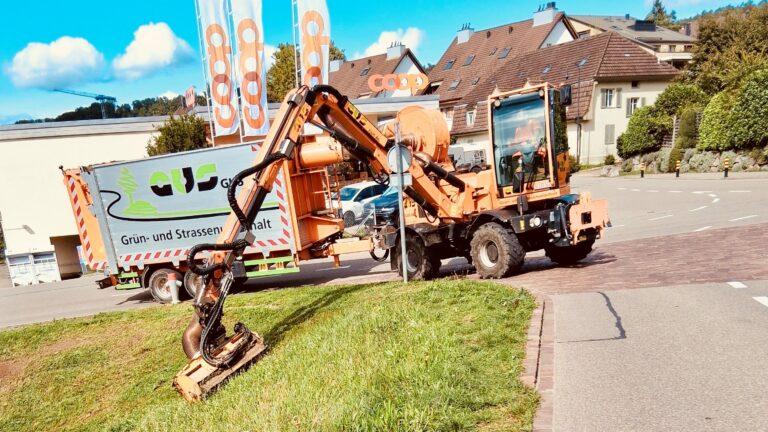 Für grössere Arbeiten in der Landschaftspflege oder solche, die schnell ausgeführt werden müssen, lohnt es sich, uns zu Hilfe zu holen. Denn einige unserer selbst entwickelten Spezialmaschinen sind deutlich effizienter als die gängigen. In einem Guss schafft zum Beispiel unsere Energreen Messerbalken mit Absaugung, wofür andere drei Arbeitsgänge brauchen.