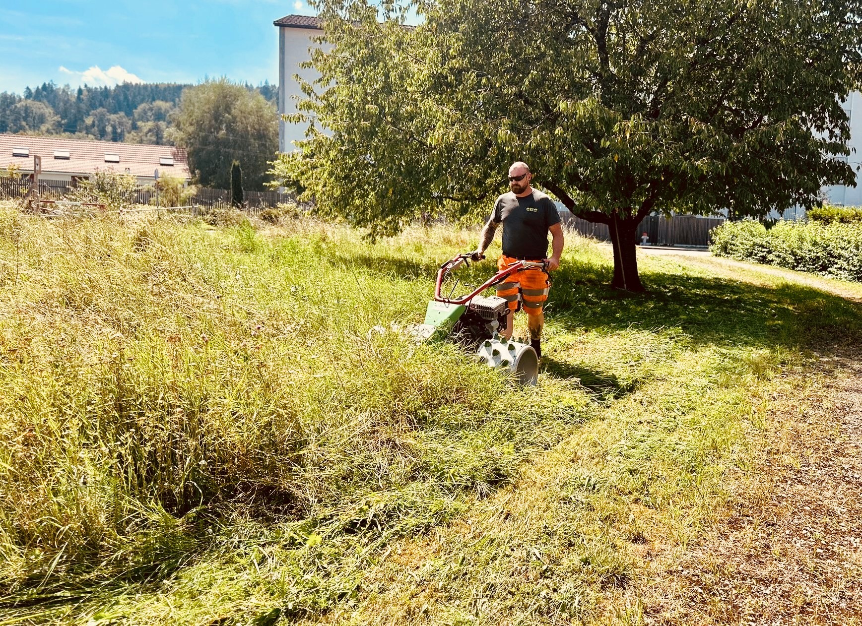 Unbewirtschaftete Böschungen und Grünflächen sind wertvoll für Pflanzen und Insekten. Hauptsächlich wirken wir hier der unkontrollierten Verbuschung entgegen. Dabei roden wir nicht einfach ab, was stört, sondern schneiden Gras, Büsche und Bäume sorgfältig von Hand oder mit geeigneten Geräten zurück. Unsere Mitarbeiter sind sensibilisiert auf eine nachhaltige Landschaftspflege.